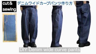 ボトムス デニムワイドカーブパンツ作り方/Wゴム /DIY Denim wide curve pants