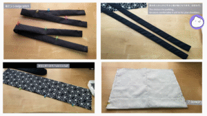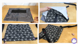 表布と裏布を合わせ、ベルト布を縫いつけます。マチにステッチ。