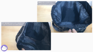 内側には、持ち物の整理に便利なポケット付き